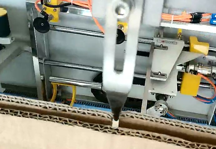 1、取箱時(shí)紙箱沒有打開。如圖所示,這個(gè)客戶的情況是在取箱的過程中,紙箱就沒有打開,還是一個(gè)整體的狀態(tài)被吸取,所以在折箱時(shí)就會(huì)報(bào)警并且掉箱。這個(gè)問題的出現(xiàn)主要是因?yàn)橛脩粼谡{(diào)整開箱機(jī)時(shí),沒有將撥針放到紙箱的縫隙處,導(dǎo)致紙箱在取箱過程中沒有被撥開。